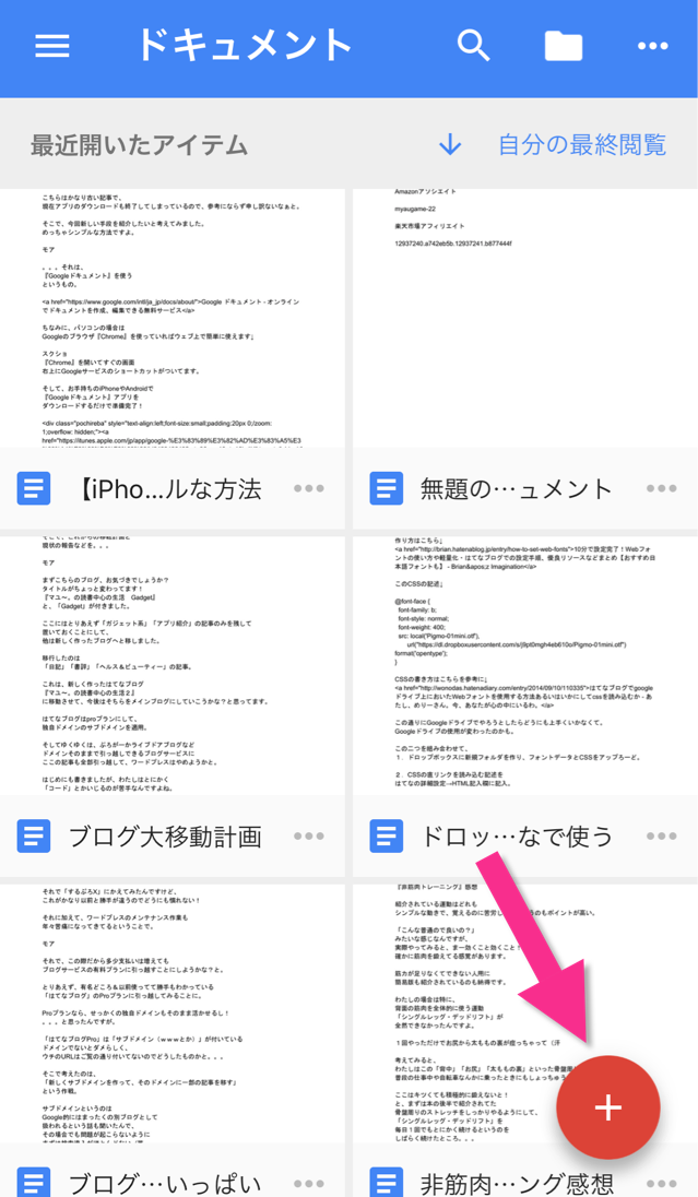 ①PC、スマホ両方で『Googleドキュメント』を開く(どちらにも同じGoogleアカウントでログイン)
